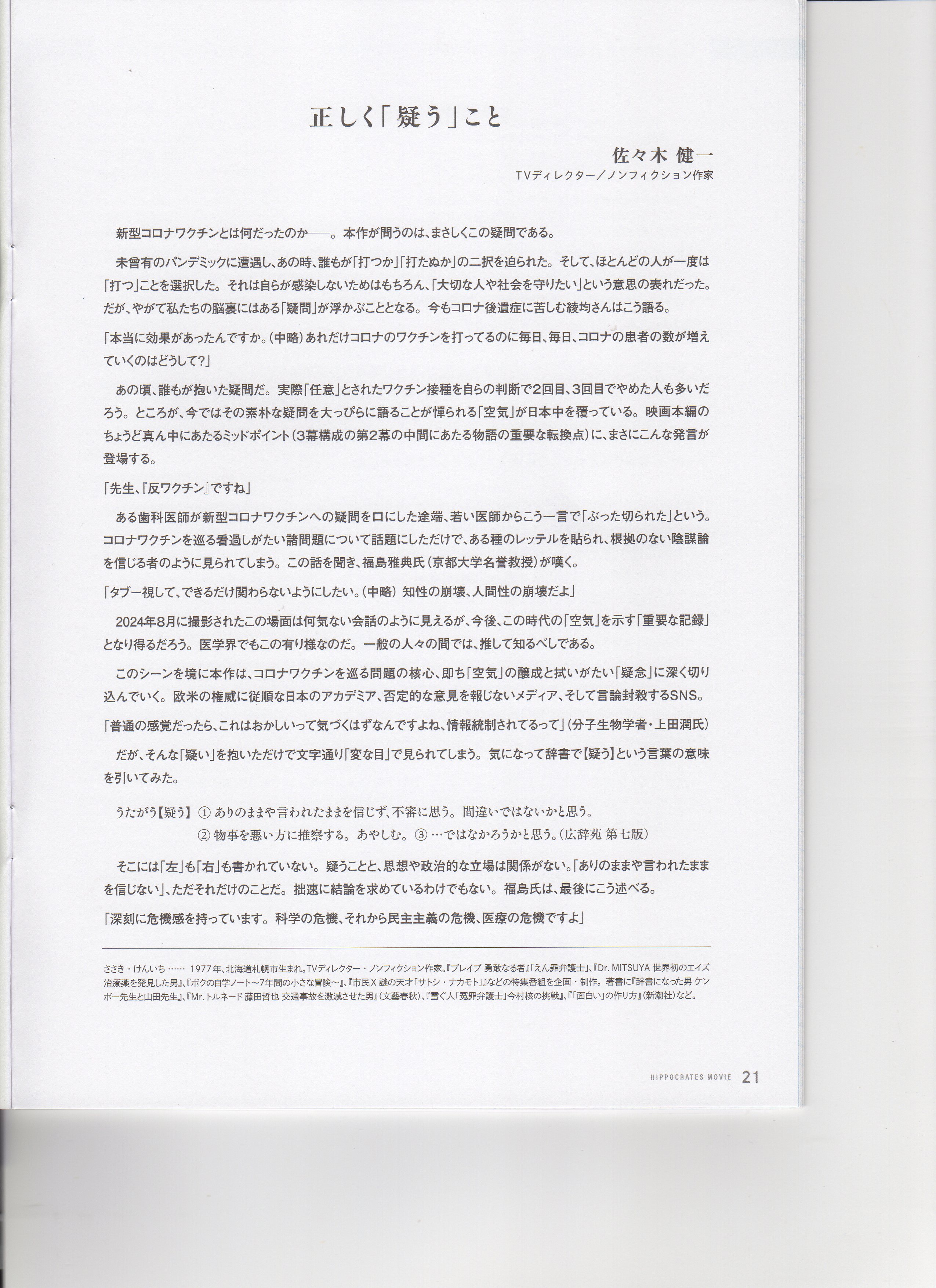 『WHO?』も見ましたが、『ヒポクラテスの盲点』、拍手です。